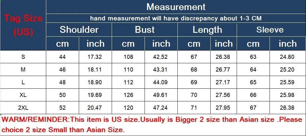 1. Asian sizes are 1 to 2 sizes smaller than European and American people. Choose the larger size if your size between two sizes. Please allow 2-3cm differences due to manual measurement. 2. Please check the size chart carefully before you buy the item, if you don't know how to choose size, please contact our customer service. 3.As you know, the different computers display colors differently, the color of the actual item may vary slightly from the following images.